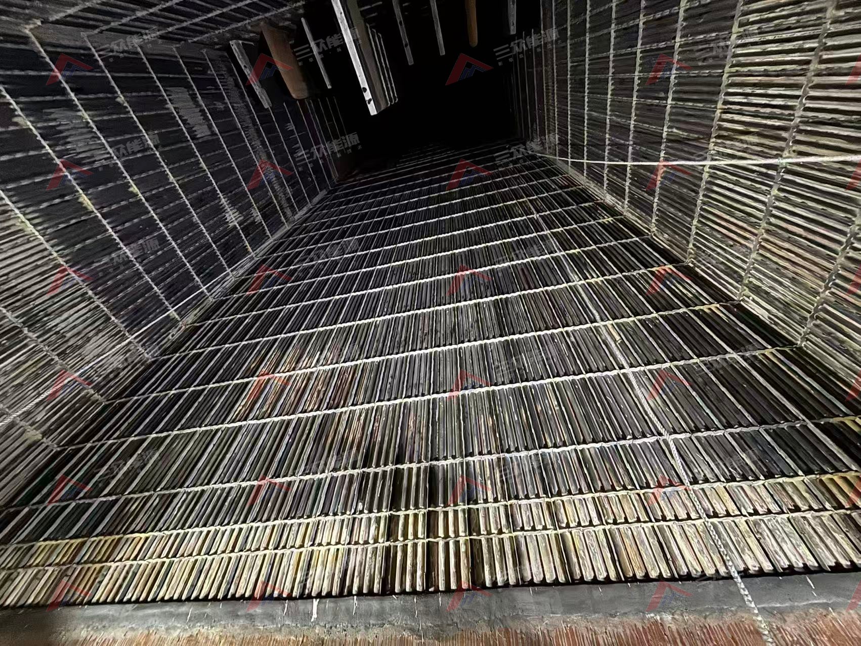 针对该锅炉的结构特点与运行工况,我公司采用了高温耐磨合金材料铸造的格栅防磨板(厚度δ≥5mm),通过对炉膛内受热面进行分区防护,形成一套科学、稳定的防磨体系。该方案不仅有效降低水冷壁的磨损速率,还兼顾了锅炉的热效率和运行稳定性。