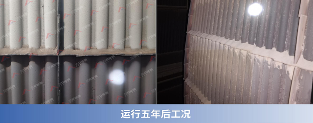 1、极低减薄量:在山东某电厂4台CFB锅炉(包含哈锅130T/H及华光260T/H炉型)的格栅防磨改造后,经过一个完整运行周期的检验,水冷壁减薄量控制在<0.1mm以内,炉膛四角及防磨板焊接处均无局部磨损产生 。